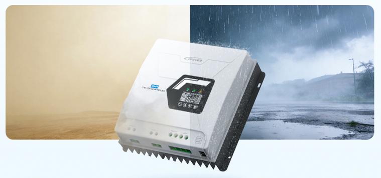 全新一代TIS/TES系列大电流MPPT太阳能充放电控制器,兼容12V/24V/48V系统,充电电流覆盖60A至100A,具备超99.5%的MPPT追踪效率与98.5%的最大转换效率。在延续TEP系列的无电池运行、多机并联、BMS通讯、本地设置等强大功能的基础上,升级了IP32防护等级与自然散热设计,提升了静音运行、边充边放、智能负载管理三大用户体验,为房车、船舶、户外监控及家庭储能等应用提供更安静、更安全、更灵活的光储控制解决方案。